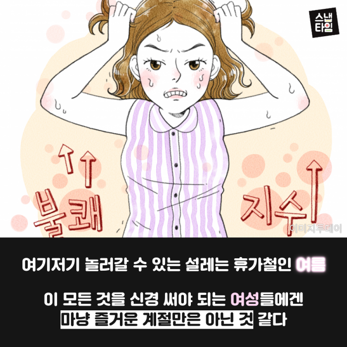 여기저기 놀러갈 수 있는 설레는 휴가철인 여름. 이 모든 것을 신경 써야 되는 여성들에겐 마냥 즐거운 계절만은 아닌 것 같다.