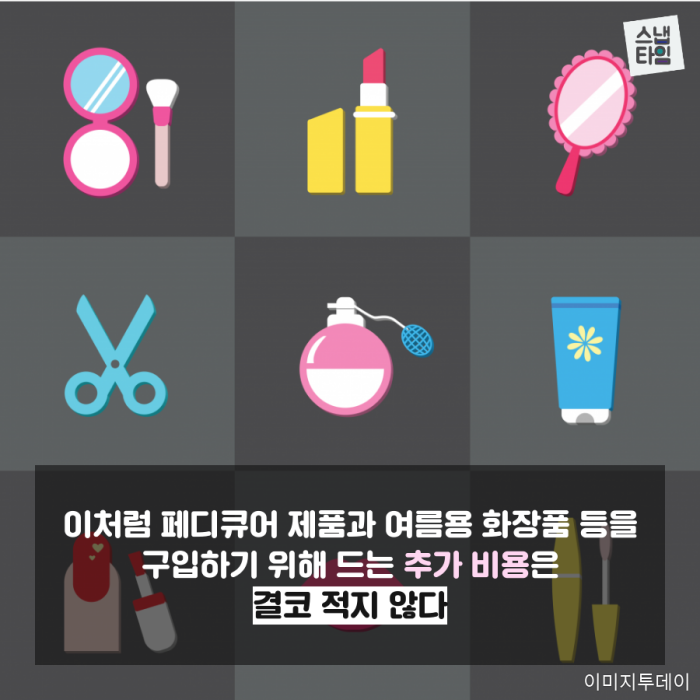 이처럼 페디큐어 제품과 여름용 화장품 등을 구입하기 위해 드는 추가 비용은 결코 적지 않다.