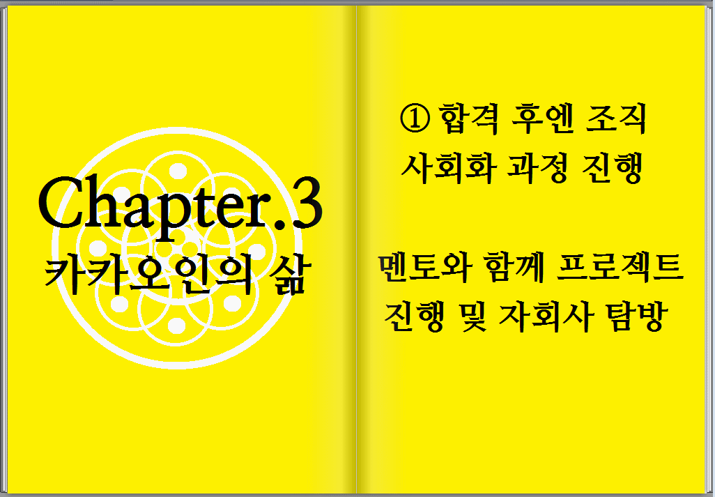 그렇다면 발탁된 신입크루는 어떤 과정을 거쳐 진정한 카카오인으로 거듭날까? 신입크루는 합격 발표 후 입사 후 프로그램을 통해 조직 사회화 과정을 겪는다. 이때 4주간 멘토들과 프로젝트를 진행한다. 프로젝트는 개발자에게 필요한 업무 지식과 기술을 갖추도록 돕는다. 뿐만 아니라 카카오모빌리티, 카카오게임즈 등의 자회사를 탐방해 카카오조직을 이해하도록 한다.