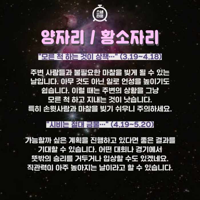 △황소자리 : 시비는 절대 금물…