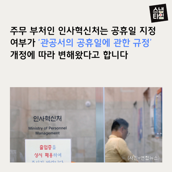 주무 부처인 인사혁신처는 공휴일 지정 여부가 ‘관공서의 공휴일에 관한 규정’ 개정에 따라 변해왔다고 합니다.