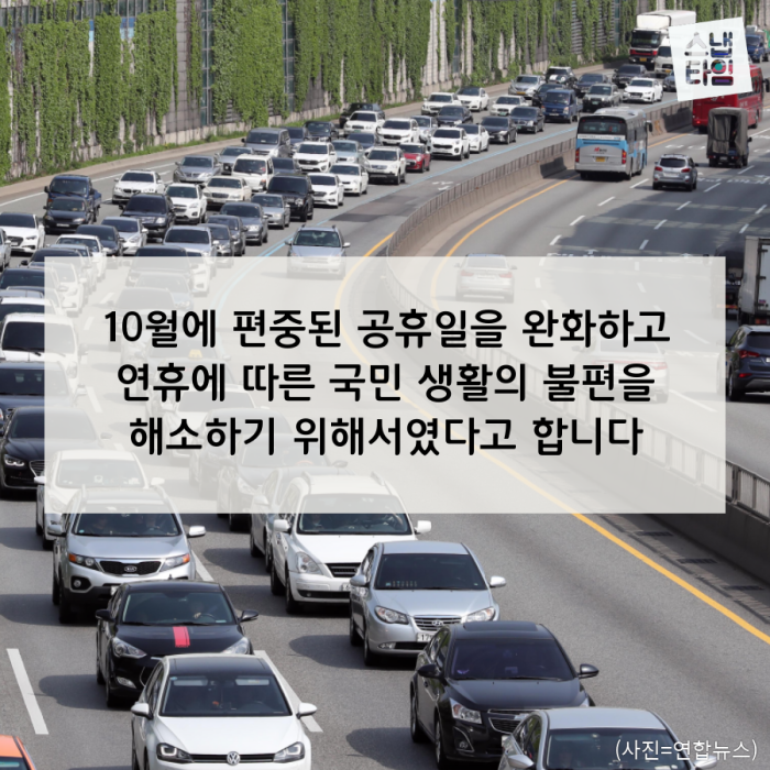 10월에 편중된 공휴일을 완화하고 연휴에 따른 국민 생활의 불편을 해소하기 위해서였다고 합니다.