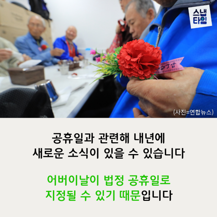 공휴일과 관련해 내년에 새로운 소식이 있을 수 있습니다. 어버이날이 법정 공휴일로 지정될 수 있기 때문입니다.