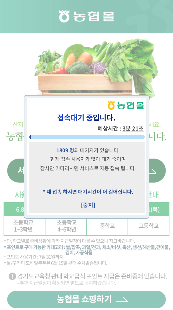 중학생 자녀를 둔 한 학부모 C씨(43·여)는 "11일 오전 농협 몰 포인트를 사용하기 위해 농협 몰에 접속했는데 접속자 수가 많아 서버가 터졌다"라고 말했다.