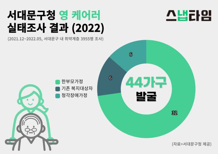 제한적인 조사지만 서대문구청은 지난해 12월부터 지난 5월까지 6개월간 취약계층을 대상으로 영 케어러 발굴에 나섰다. 이데일리 스냅타임이 서대문구청으로부터 전달받은 영 케어러 실태조사를 분석한 결과, 특히 한부모가정에서 영 케어러가 발생할 위험이 높은 것으로 나타났다.